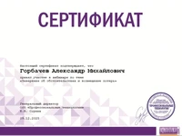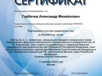 Сертификат участника Всероссийского онлайн-семинара на тему "Корпорации в системе юридических лиц"
