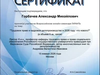 Сертификат участника Всероссийского онлайн-семинара на тему "Трудовое право и кадровое делопроизводство в 2026 году: ...